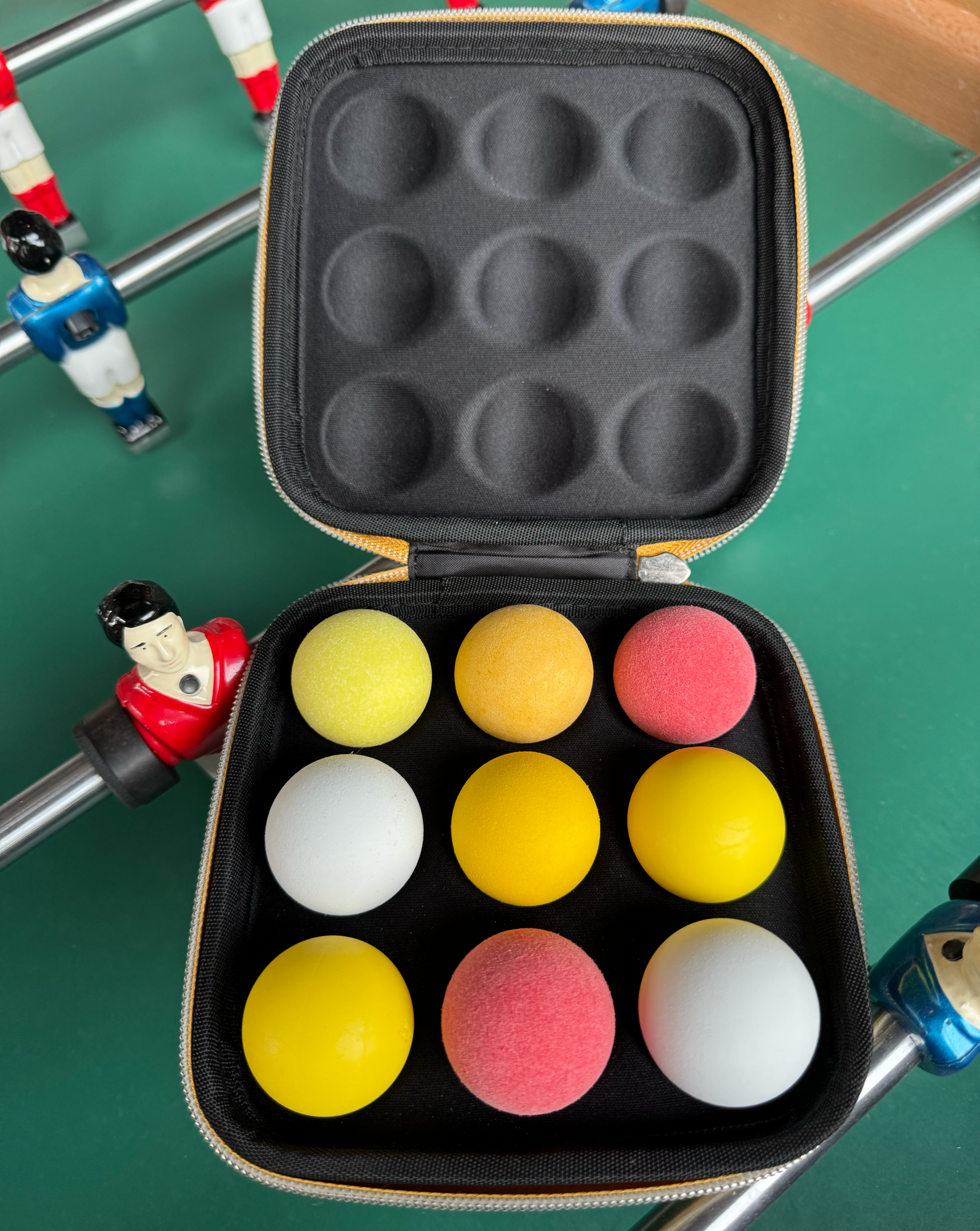 Practical and elegant, this storage box allows you to transport and protect your foosball balls with style, and stay always ready for your game.